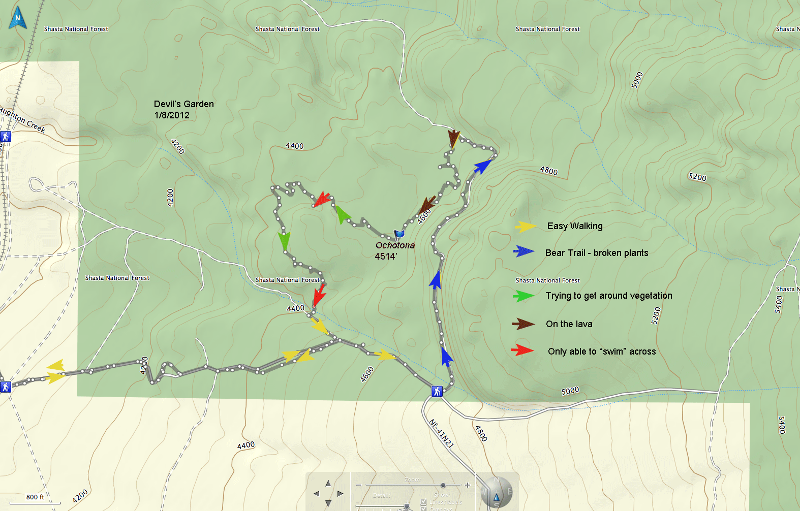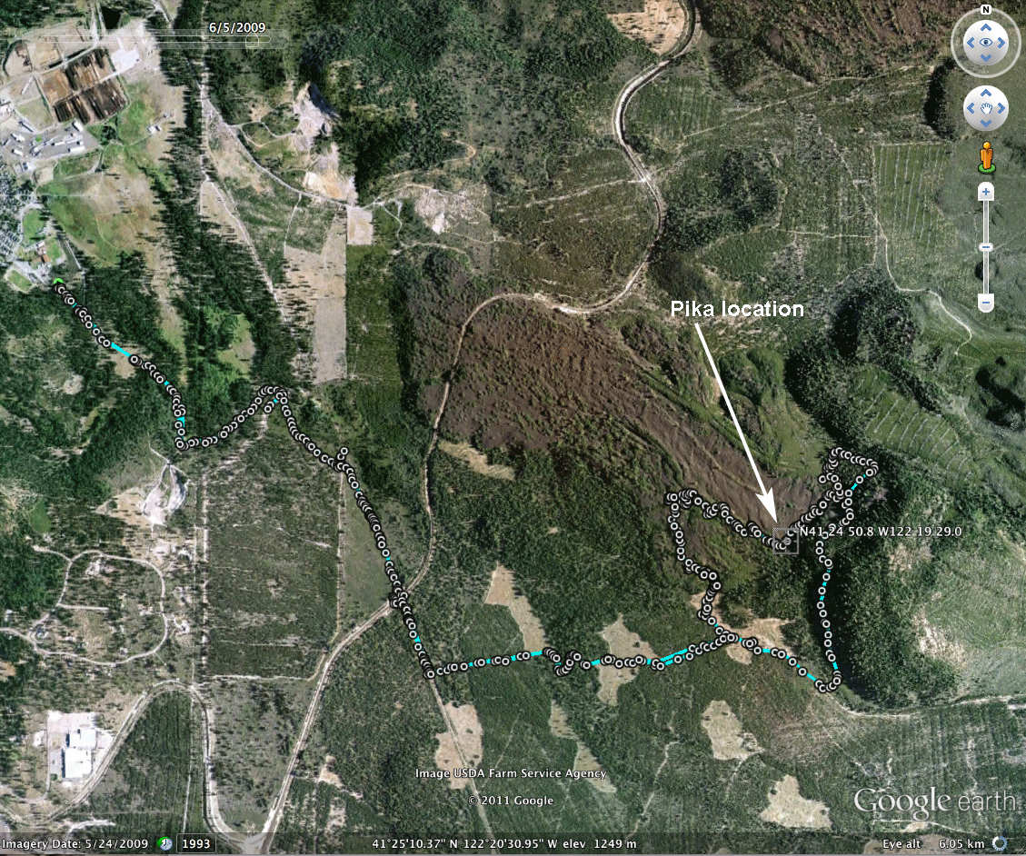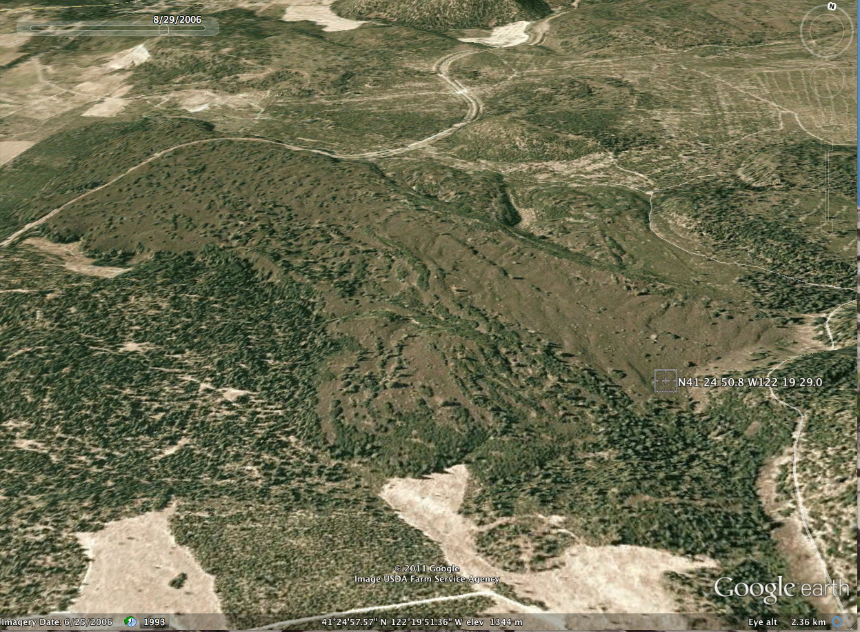 January 8, 2012 at N41.41411 W122.32473 also on April 21, 2012 at 4,481' N41.41384 W122.32546 |